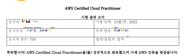 associate developer 시험과 범위가 중복되는 부분이 있었지만 AWS Certified Cloud Practitioner시험을 본격적으로 준비하게 된 기간은 9월 22일~10월 7일까지 대략 2주정도의 시간에 하루에 약 1~2시간 정도는 공부를 했습니다.